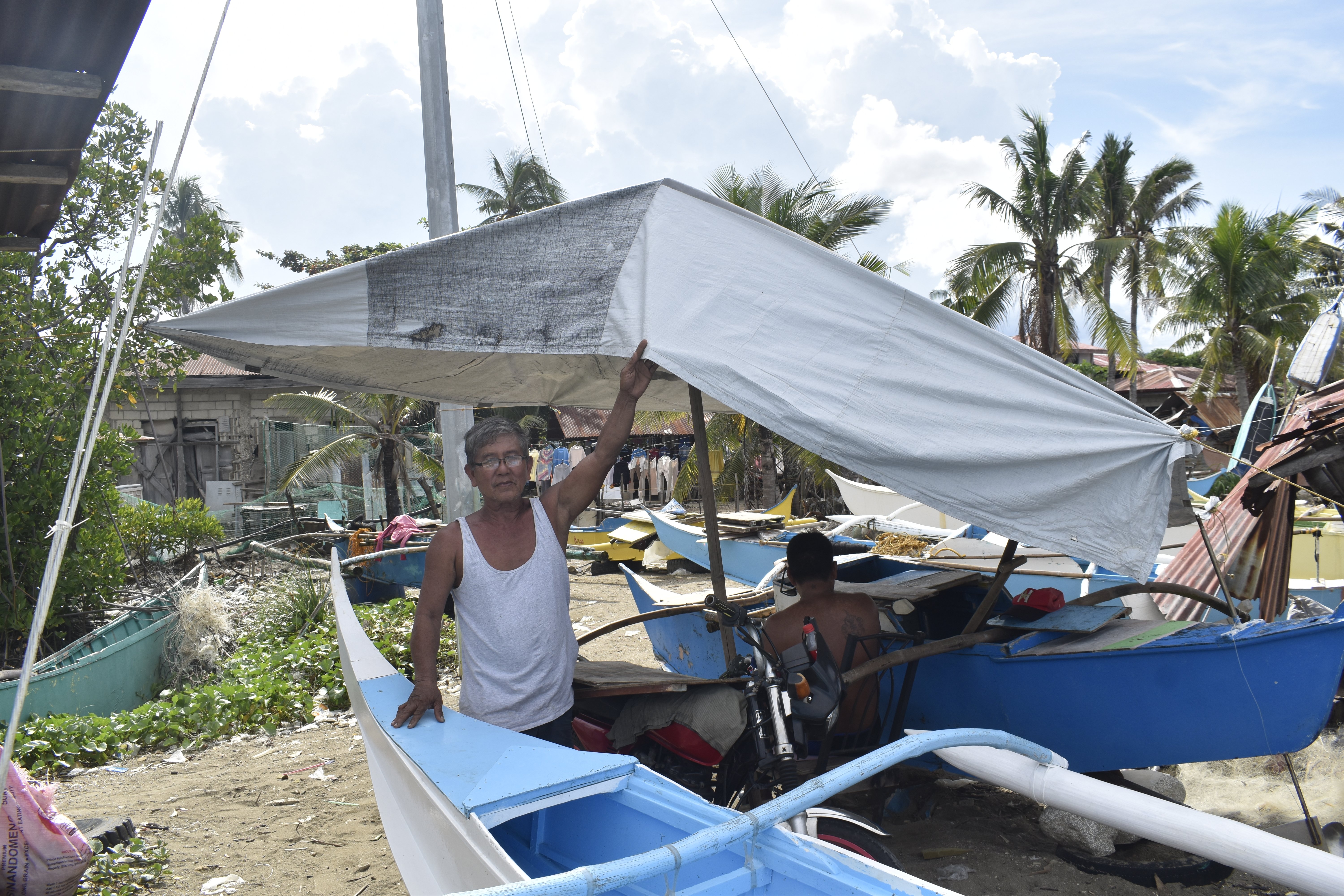 As the community gradually recovered, some families including Kuya Francisco’s neighbours, found they no longer needed the tarpaulins. Rather than letting these go to waste, he collected them and stitched them together to create larger sheets. These were then repurposed into sheds for fellow fishermen who had also been affected by the typhoon.