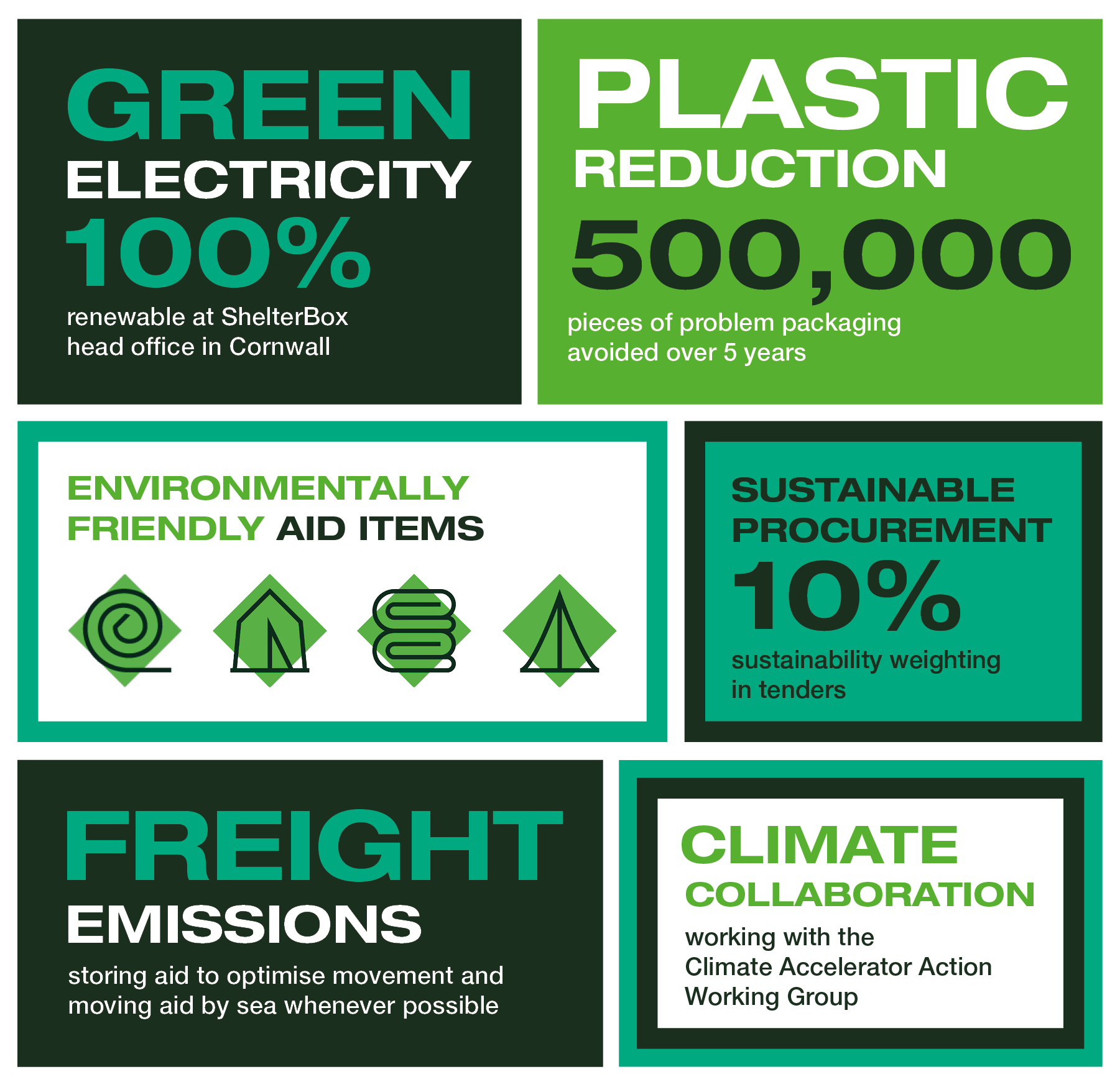 Climate collaboration. We joined the Climate Accelerator Action Working Group with other major charities. This will measure the carbon footprint of common aid items.