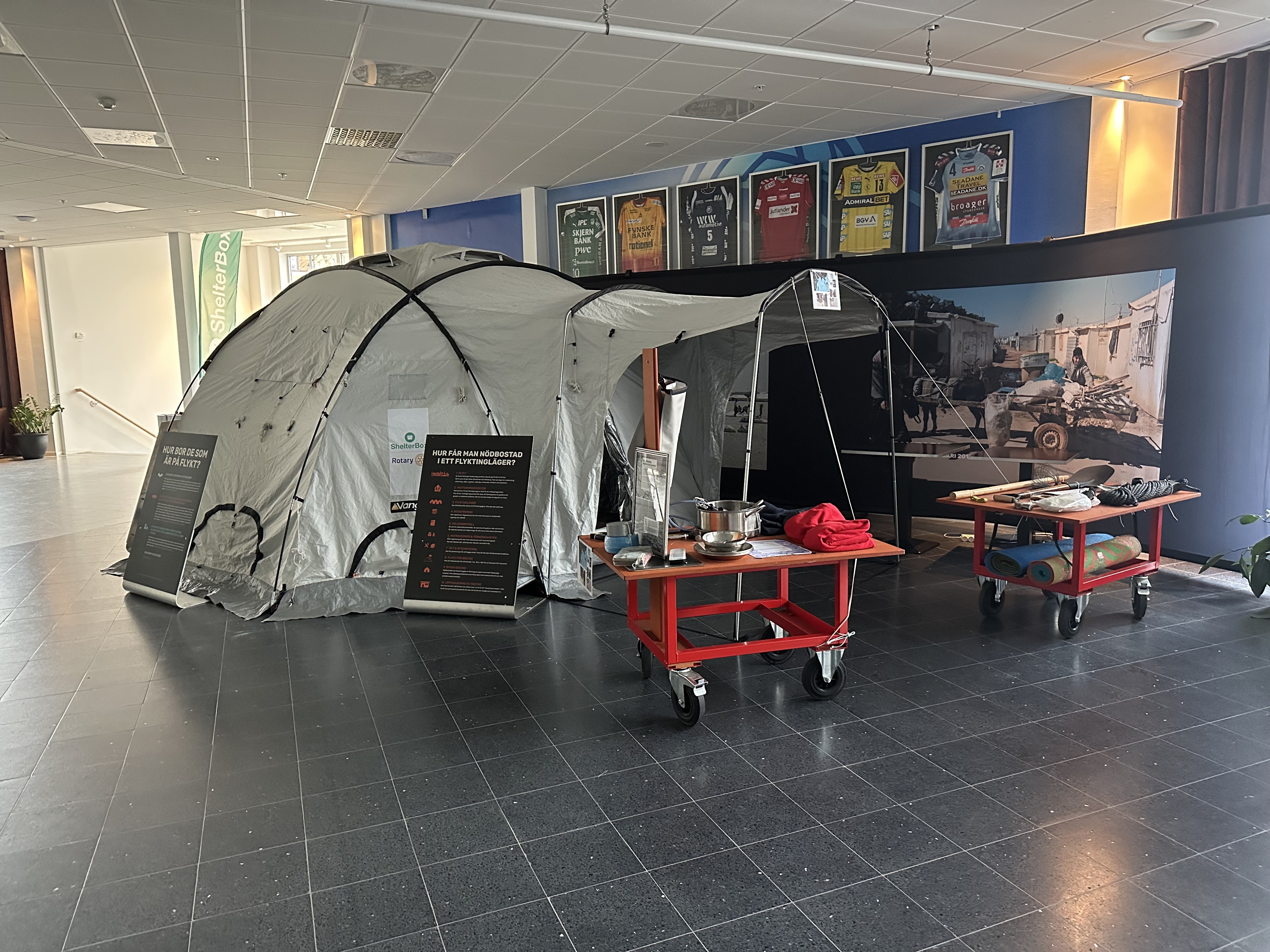 Rotaryklubbarna i Alingsås satte gemensamt upp denna utställning 2025. De bjöd in skolelever från åk 5, näringslivet och även allmänheten. Förutom visningsmateriel kan besökarna med 3-D glasögon dels se hur människor lever i två olika flyktingläger och dels besöka en familj som har fått stöd av ShelterBox efter en jordbävning.