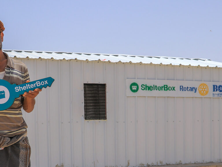 ShelterBox och vår partner BCHR har stöttat tusentals människor i Marib med paket som innehåller filtar och hushållsartiklar. Detta utöver antingen ett familjetält i canvas eller en uppsättning presenningar och rep. Genom att erbjuda järnnätsskydd kan vi erbjuda människor en mer hållbar form av tillfälligt skydd, bättre anpassat till den lokala miljön.