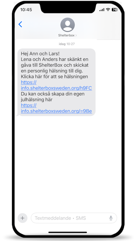 Din julhälsning skickas som ett sms till mottagaren. Med hjälp av länken i meddelandet kan din vän läsa hälsningen.
