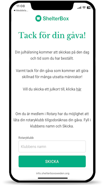 ShelterBox arbetar över hela världen för att ge akut nödhjälp till människor som drabbats av katastrofer. Din gåva bidrar till att leverera tält, filtar och nödvändiga förnödenheter till familjer som förlorat allt. En liten insats från dig blir ett stort stöd för någon annan och sprider samtidigt julens värme på flera håll.
